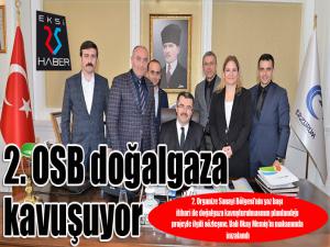 2. Organize Sanayi Bölgesinin yaz başı itibari ile doğalgaza kavuşturulmasının planlandığı projeyle ilgili sözleşme, Vali Okay Memişin makamında imzalandı. İmza törenine, 2. OSB Yönetim Kurulu Başkanı Vali Okay Memişin yanı sıra, ETSO Meclis Başkanı ve 2.OSB Yönetim Kurulu Başkan Vekili Saim Özakalın, 2.OSB Bölge Müdürü Fırat Karakaya, Proje Koordinatorü Ömer Ebren, PALEN A.Ş Yönetim Kurulu Üyesi Neşe Kemerdere ile İl Müdürü Emre Akbulut katıldı.