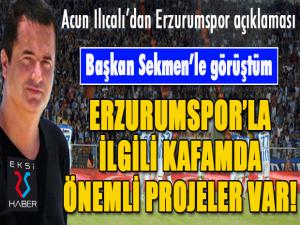 EKSİ25HABER / ERZURUM - Erzurumlu ünlü televizyoncu Acun Ilıcalı, CNN Türkte katıldığı bir programda Erzurumsporla ilgili açıklamalarda bulundu. Erzurumsporun Süper Ligde olmasından büyük mutluluk duyduğunu belirten Ilıcalı, takımla ilgili kafasında güzel projelerin olduğunu söyledi. Konuyla ilgili Büyükşehir Belediye Başkanı Mehmet Sekmenle bir görüşme gerçekleştirdiğini de ifade eden Acun Ilıcalı, Ben Erzurumluyum. Bütün ailem Erzurumlu. Kulübümüzün de bu sezon Süper Ligde olması bizim için çok güzel bir olay. Çok mutluyuz. Sevgili Büyükşehir Belediye Başkanımızla da görüştüm. En kısa zamanda Erzurumsporla ilgili de bir şeyler yapmaya çalışacağım. Erzurumsporu gönülden destekliyorumdedi.