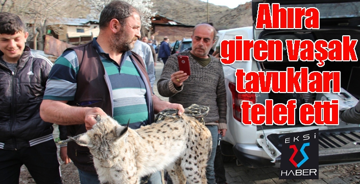 Nesli tükenme tehlikesiyle karşı karşıya olan vaşak dün akşam Oltu Şehitler Mahallesi Zennum Sokak'ta Mümine Vural’ın ahırına girdi. Ahıra havalandırmadan giren ve 19 tavuğu telef eden vaşak ahırda mahsur kaldı.