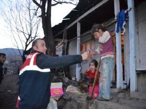Erzurum İl Jandarma Komutanlığı Çocuk ve Kadın Kısım Amirliği ve Şenkaya İlçe Jandarma Komutanlığı çocuklara çikolata ikramında bulundu.