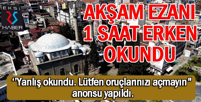 EKSİ25HABER / ERZURUM - Samsun’da akşam ezanı normal zamanından 1 saat önce okundu. Yanlışlıkla okunan ezanın ardından "Ezan-ı şerif merkezi sistemden yanlış okundu. Lütfen oruçlarınızı açmayın" anonsu yapıldı.