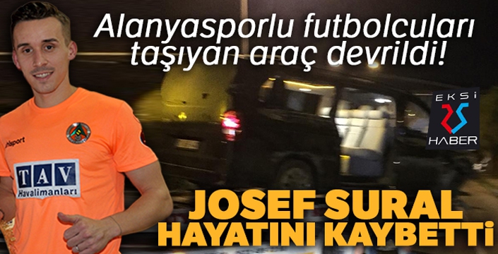 EKSİ25HABER / ERZURUM - Aytemiz Alanyaspor'un dün deplasmanda oynadığı Kayserispor maçının ardından futbolcular Steven Caulker, Djalma Campos, Wanderson Baiano, Papiss Demba Cisse, Isaac Sackey, Welinton Souza ve Josef Sural kiraladıkları özel VIP minibüsle takımdan ayrı olarak dönüşe geçti. Kayseri'den bir firmadan kiralandığı belirtilen ve E.A.'nın kullandığı VIP minibüs saat 02.30 sıralarında Alanya'nın girişindeki Dinek mevkii yakınlarında sürücüsünün kontrolünden çıkan minibüs yol kenarındaki su kanalına girip yan yatarak sürüklendi. Kazada futbolculardan Josef Sural başını çarparak ağır yaralanırken, Welinton Souza ve Isaac Sackey ise hafif şekilde yaralandı. Diğer futbolcular ve 2 sürücü ise kazayı yara almadan atlattı. Kazanın ardından olay yerine gelen sağlık ekiplerinin müdahale ettiği yaralı futbolcular ilçedeki özel bir hastaneye kaldırılarak tedaviye alındı. Kazanın ardından minibüsün 2 sürücüsü ifadesinin alınması için polis merkezine götürüldü. Sürücülerden birinin ifadesinde olayın şokuyla kazayı hatırlamadığını söylediği belirtildi. Minibüste bulunan futbolcuların yakınları ile Aytemiz Alanyasporlu yöneticiler, teknik heyet ve futbolcular da kazayı haber alır almaz hastaneye geldi. Durumu ciddi olan, kafasından darbe aldığı ve vücudunun çeşitli yerlerinde kırıklar olduğu belirlenen Josef Sural ise ameliyata alındı. Ameliyattan çıkan ve yoğun bakımda tedavisi süren Sural, sabah saatlerinde doktorların tüm müdahalesine rağmen yaşamını yitirdi. Sural'ın ölüm haberini alan takım arkadaşları, kulüp yönetimi ve çok sayıda taraftar hastaneye akın etti.