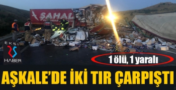 EKSİ25HABER / ERZURUM - Erzurum’un Aşkale ilçesinde bir tırın diğer tıra arkadan çarpması sonucunda meydana gelen feci kazada 1 kişi hayatını kaybetti, 1 kişi ise yaralandı. Kaza sonrasında iki tır adeta paramparça oldu.