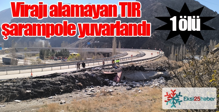 EKSİ25HABER / ERZURUM - Erzurum-Artvin karayolunda meydana gelen trafik kazasında 1 kişi hayatını kaybetti. Çekirdek yüklü tır, Erzurum-Artvin karayoluna inerken viyadükte virajı alamayarak şarampole yuvarlandı. Tır sürücüsü, aracından atlayarak kurtulmaya çalıştı ancak hayatını kaybetti.