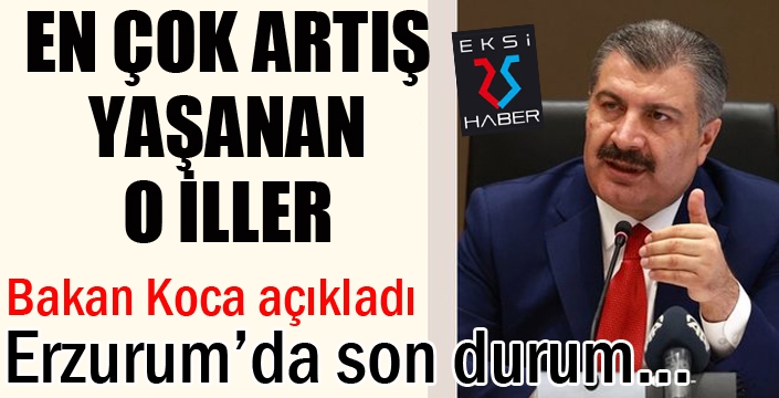 EKSİ25HABER / ERZURUM - Sağlık Bakanı Fahrettin Koca Koronavirüsle ilgili açıklamalarda bulundu. En çok artışın yaşandığı illeri açıklayan Bakan Koca, Orta Anadolu ve Güney Doğu Anadolu Bölgesine dikkat çekti.