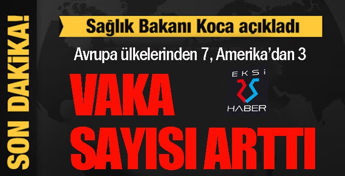 EKSİ25HABER / ERZURUM - Sağlık Bakanı Koca, kişisel sosyal medya hesabından ''Açıkladığımız ilk vakanın gözlem altında tutulan çevresindeki iki kişiye tanı konmuştur. Avrupa ülkelerinden gelmiş yedi, Amerika’dan gelmiş üç vakamız var. Durum üzücü ama… Tespit edilmiş her vaka, her izolasyon hepimiz için emniyettir'' açıklamasında bulundu.