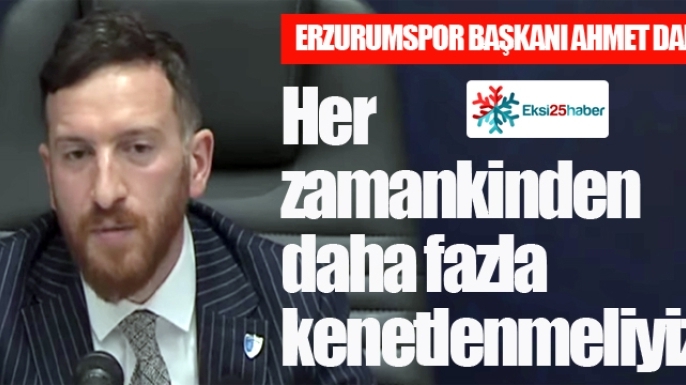 EKSİ25HABER / ERZURUM - Erzurumspor Kulüp Başkanı Ahmet Dal, Hilton Garden Inn Erzurum’da düzenlediği kapsamlı basın toplantısında hem şampiyonluk yarışını hem son haftalarda kamuoyunda oluşan tartışmaları hem de kulübün tesisleşme ve altyapı projelerini ayrıntılarıyla değerlendirdi. Yaklaşık iki saat süren toplantıda Dal, “Son 12 hafta, ilk 26 haftadan daha zor geçecek. Eğer şampiyon olmak istiyorsak her zamankinden daha fazla kenetlenmeliyiz” mesajı verdi.