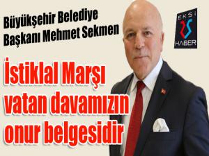 EKSİ25HABER / ERZURUM - Erzurum Büyükşehir Belediye Başkanı Mehmet Sekmen, İstiklal Marşının TBMMde kabulü ve Mehmet Akif Ersoyu Anma Günü münasebetiyle bir mesaj yayımladı.