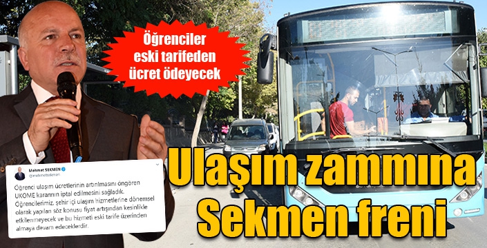 Erzurum'da UKOME kararıyla ulaşımda öğrenci ücretlerine zam yapılmıştı. Vatandaşların yeni uygulanan zam tarifesinin geri çekilmesi talebine Başkan Sekmen kayıtsız kalmadı. Sosyal medya hesabından öğrencilere müjdeli haberi veren Sekmen, UKOME kararının iptalini sağladıklarını açıkladı.