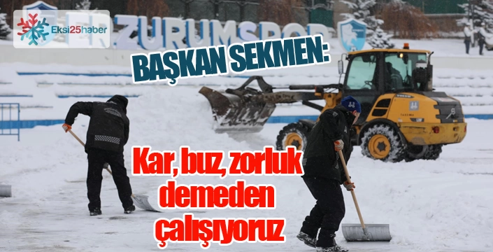 Şehrin dört bir yanında son teknoloji kar temizleme araçları ve yüzlerce personelimizle yoğun bir şekilde çalışmalarına devam ettiklerini ifade eden Başkan Sekmen, "Hemşehrilerimizin güvenli ve konforlu bir ulaşım sağlaması için 7/24 görev başındayız. Kış aylarının çetin geçtiği Erzurum’da, yolların kapanmaması ve günlük hayatın aksamaması için ekiplerimiz büyük bir özveriyle çalışıyor. Ana arterlerden mahalle yollarına, hastane ve okul güzergâhlarından kaldırımlara kadar her noktada kar temizleme ve tuzlama çalışmalarımız aralıksız sürüyor. Vatandaşlarımızın mağduriyet yaşamaması adına gece gündüz demeden sahada olan tüm ekiplerimize teşekkür ediyor, Erzurum’un kışla mücadelesinde hep birlikte güçlü olduğumuzu bir kez daha vurgulamak istiyoruz. Sahadaki çalışmalarımızı takip etmeye devam edin. Kar, buz, zorluk demeden Erzurum için çalışmaya devam ediyoruz" şeklinde konuştu.