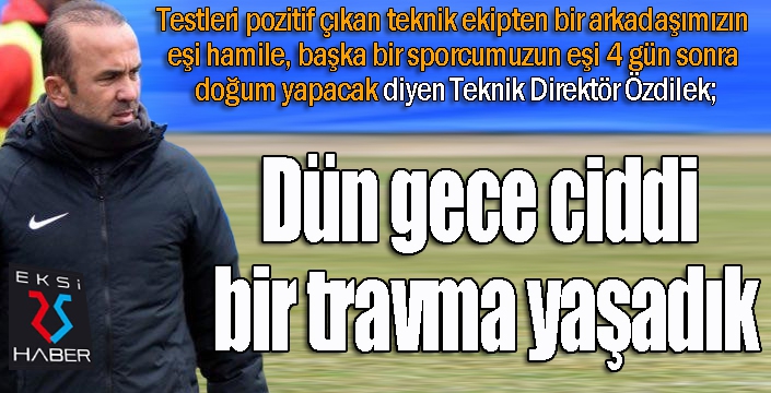 EKSİ25HABER / ERZURUM - BB Erzurumspor’un Teknik Direktörü Mehmet Özdilek, takımda çıkan pozitif korona virüs vakaları sonrası, çok zor zamanlar yaşadıklarını söyledi. Dün gece ciddi bir travma yaşadıklarını aktaran Özdilek, "Benim kızımı doğum gününde ağlatmaya kimsenin hakkı yok. Bu travma herkeste var. Kısa sürede birçok takımda bu vakaların artacağını düşünüyorum" dedi.