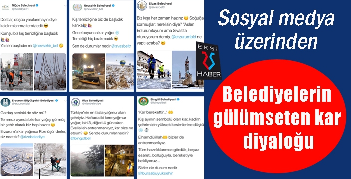 EKSİ25HABER / ERZURUM - Erzurum, Sivas, Niğde, Nevşehir, Rize ve Bingöl belediyelerinin sosyal medya hesaplarında kar ile ilgili yaptığı paylaşımlar kullanıcıları gülümsetti.