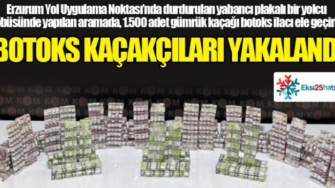Erzurum Emniyet Müdürlüğü'nden yapılan açıklamaya göre, 22 Şubat Pazar günü Erzurum Yol Uygulama Noktası’nda durdurulan yabancı plakalı bir yolcu otobüsünde yapılan aramada, 1.500 adet gümrük kaçağı botoks ilacı ele geçirildi.