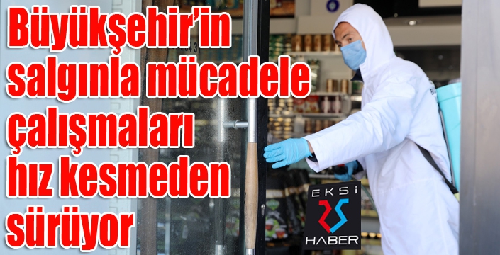 Büyükşehir’in ekipleri, şehri önce baştan aşağı yıkadı ardından da kamuya açık tüm alanları dezenfekte etti. Caddeler, ana ve ara arterler başta olmak üzere kamuya açık alan ve iş yerlerini temizleyen ekipler, vatandaşları COVID-19 salgınına karşı da uyardı.
