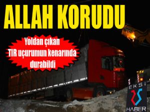EKSİ25HABER / ERZURUM - Erzurum'un Aşkale İlçesi'nde meydana gelen trafik kazasında buzlanma nedeniyle yoldan çıkan TIR uçurumun kenarında durabildi.