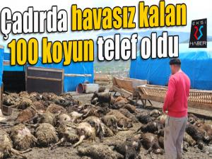 EKSİ25HABER / ERZURUM - İlçenin Cumhuriyet Mahallesi'nde yaşayan besici Adem Sağdıç, afat evler mevkiinde çadır ahıra dün saat 19.00 sularında otlamaktan gelen 100 koyun ile bir keçisini bıraktı. Bugün sabah hayvanları çıkarmak için ahıra giren Adem Sağdıç, gördüğü manzara karşısında şok yaşadı.