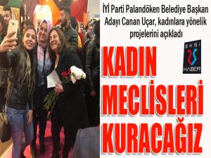 Burada vatandaşlara karanfil dağıtıp projelerini anlatan Uçar, görev gelir gelmez kadın meclisleri kuracaklarını açıkladı. Kadın ve gençlerle ele ele verip hayal edilen bir Palandökeni kısa sürede hakettiği noktaya getireceklerini belirten Uçar, Her fırsatta söylüyorum. Palandökene kadın eli değecek. Hemen kadın meclisleri oluşturup, buna yönelik projeleri hayata geçireceğiz. Kadınlara ve gençlere verdiğimiz değeri herkes görecek. Gerek yeni istihdam kapılarının oluşturulmasında gerekse yeni projelerimizde kadınlar her zaman ön planda olacak. Daha önce de açıkladığım gibi kadınlar evlerinde üretecek biz pazarlayıp onlarında ev ekonomilerine katkı sağlamalarına destek olacağız. Herkesin hayal ettiği Palandökeni el birliği ile hep birlikte zirveye taşıyacağızdedi.