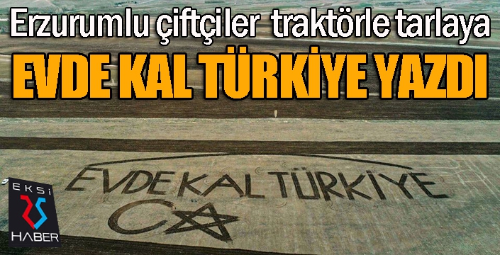 Erzurum’un Aşkale İlçesinde ki çiftçiler Korona virüs önlemleri kapsamında farkındalık oluşturmak adına traktörleriyle 900 dönümlük arazinin ortasına ‘’ Evde kal Türkiye’’ yazdılar.