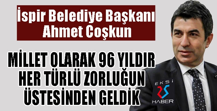 EKSİ25HABER / ERZURUM - İspir Belediye Başkanı Ahmet Coşkun Cumhuriyet Bayramı münasebetiyle bir mesaj yayınladı.