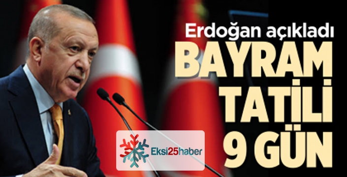 Ramazan Bayramı tatilinin uzatıldığını açıklayan Cumhurbaşkanı Erdoğan, “Sözlerimi bitirmeden önce kamu çalışanlarımızın 10 Nisan 2024 tarihinde başlayacak Ramazan Bayramı öncesindeki bir buçuk günlük sürede idari izinli sayılacakları kararımızı kamuoyumuzla paylaşmak istiyorum. Böylece Salı günkü yarım günü ve Pazartesi gününü bayram tatiline ekleyerek kamu çalışanlarımıza 9 günlük rahatça değerlendirebilecekleri bir vakit verdik. Genel olarak özel sektörümüzün de böyle]yaklaşıma sahip olduğunu biliyoruz. Ramazan Bayramı'nızı şimdiden tebrik ediyor ve bir buçuk günlük idari izin kararımızın hayırlı olmasını diliyorum. Hepinizi bir kez daha sevgiyle saygıyla selamlıyorum” dedi.
