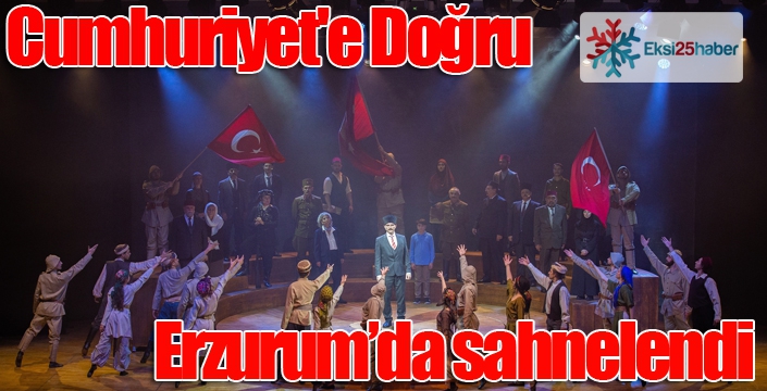 EKSİ25HABER / ERZURUM - Millî Eğitim Bakanlığının "Cumhuriyet'imizin 100. yılı projeleri" çerçevesinde hazırlanan "Cumhuriyet'e Doğru" adlı tiyatro oyunu Erzurum'da sahnelendi.