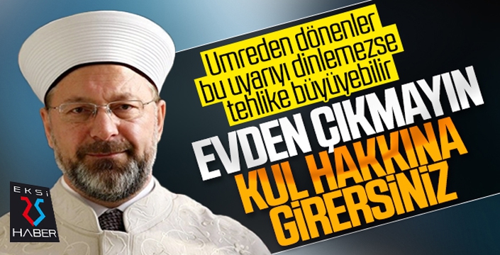 EKSİ25HABER / ERZURUM - Erbaş twitter hesabından yaptığı açıklamada, “Bugün Umreden son 5300 umrecimiz dönüyor. Hem kendi sağlıkları ve hem de çevresindeki insanların sağlıklarını korumak için 14 gün boyunca kesinlikle evlerinden çıkmamalarını ve ziyaretçi kabul etmemelerini yeniden hatırlatmak istiyorum. Bu bir kul hakkıdır. Lütfen uyalım” dedi.