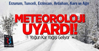 Meteorolojiden yapılan açıklamada, “Doğu Anadolu'nun yüksek kesimlerinde hafta sonu yoğun kar yağışı bekleniyor. Doğu Anadolu'nun kuzeyinde (Erzincan, Tunceli, Erzurum, Ardahan, Kars ve Ağrı) 1750 metre üzeri rakımlı yerlerde yer yer yoğun kar yağışı öngörülüyor. Bu bölgelerde pazar günü öğle saatlerinden itibaren de 1000 metre üzeri rakımlı yerlerde yer yer yoğun kar yağışı tahmin ediliyor. Olası buzlanma, görüş mesafesinde azalma ve ulaşımda aksamalar gibi olumsuzluklara karşı dikkatli ve tedbirli olunması gerekiyor" denildi.