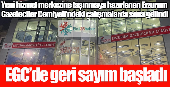 EKSİ25HABER / ERZURUM - Erzurum Gazeteciler Cemiyeti’nin yeni adresinde geriye doğru sayım başladı. Demirevler Caddesi üzerinde bulunan yeni hizmet merkezine taşınmaya hazırlanan Erzurum Gazeteciler Cemiyeti’ndeki çalışmalarda sona gelindi.