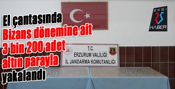 Erzurum İl Jandarma İstihbarat unsurlarınca yapılan çalışmalarda, Köprüköy ilçesinde Ağrı’dan gelen bir yolcu otobüsünde bir yolcunun el çantasına gizlenmiş Bizans dönemine ait olduğu değerlendirilen 2 santimetre çapında üzerinde eski medeniyetlere ait figürler bulunan 3 bin 200 adet altın para ele geçirildi. Ele geçirilen paralar Erzurum Müze Müdürlüğüne teslim edilmek üzere muhafaza altına alındı. Şüpheli ise gözaltına alınarak adliyeye sevk edildi.