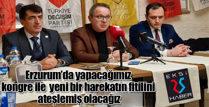 Cuma günü Türkiye Değişim Partisi Genel Başkanı Mustafa Sarıgül’ün katılımı ile yapılacak olan Erzurum Kongresi öncesi Genel Başkan Yardımcısı Avukat Ebubekir Elmalı bir basın toplantısı düzenledi. Elmalı, gazetecilere yaptığı açıklamada, Erzurum’u harekatın pilot ili olarak belirlediklerini ifade ederek, “Yeni kurulan bir partiyiz. 70’e yakın şehirde teşkilatlanmayı tamamladık ve seçime girmeye hak kazandık. Erzurum’da teşkilatlanma tamamlandı ve Cuma günü genel başkanımızın katılımıyla kongremizi yapacağız. Erzurum’a çok önem veriyoruz. Burayı pilot il olarak belirledik. Erzurum’da yapacağımız kongre ile buradan yeni bir harekatın fitilini ateşlemiş olacağız” ifadelerini kullandık.