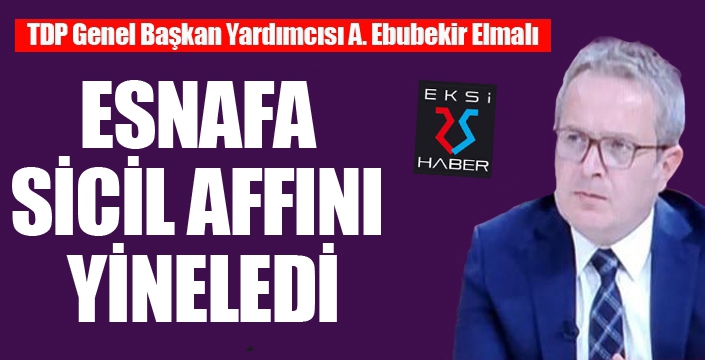 " Esnaf para kazanacak, rahat hareket edecek ki ülkesine, devletine, milletine faydalı olabilsin, bol bol vergi verebilsin! istihdam sağlayabilsin." diyen TDP Genel Başkan Yardımcısı Avukat Ebubekir Elmalı, " Şu anda esnaf kelimenin tam anlamıyla can çekişiyor. Çok çok acil esnafa genel af çıkarılmalı, sicil affından, ödeme kolaylığına, teşvikten, fırsatlar ayrıcalığına, tüm bunları içeren Türkiye tarihinde görülmemiş tarihi fırsatlar yumağı sağlanmalı ve sunulmalı.