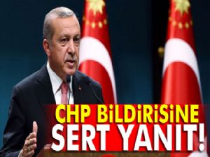 Ana muhalefet partisinin yayınladığı bildiriye ilişkin sert açıklamalarda bulunan Erdoğan, "Türkiye'nin önüne sıra sıra dizilen terör örgütleri, kimi zaman nöbetleşe, kimi zaman hep birlikte kendilerine verilen görevi yerine getiriyorlar. Nedir bu grev? Terör örgütlerine verilen vazife Türkiye'nin ününü kesmek, moralini bozmaktır. Türkiye ne zaman kendisi ve bölgesindeki kardeşleri için hayırlı bir adım atmaya kalksa ortalık toz dumana boğuluyor. DEAŞ denilen örgüt farklı isimlerle 11-12 yıldır Irakta, 4,5 yıldır Suriye'de faaliyet gösteriyor. PKK 1984 yılından beri kanlı eylemlerini yürütüyor. FETÖ ise yaklaşık yarım asrı bulan bir hazırlığın ardından 3 yıldır tüm gücü ile ülkemize ve milletimize karşı savaş ilan etmiş durumda. Tüm bu örgütlerin bölgenin yeniden yapılandığı dönemde Türkiye'ye saldırmaları bir tesadüf değil. Bu örgütler iddiaları ve örgütleri normal şartlarda asla bir araya gelmez. Bugün hiçbiri de alnı senaryoda yer almaktan rahatsızlık duymuyor. Bunların iddiaları da ideolojileri de yalan yıllarca 'eğitim, ibadet' diyerek milleti kandıran FETÖ'nün gözünü kan bürümüş bir katil sürüsü beslediğini 15 Temmuz'da gördük. Bizim verdiğimiz vergilerle ordumuza aldığımız uçaklar, helikopter, tanklarla, silahlarla bu milletin evladına ölüm yağdırdılar. Şairin 'maske yırtılmasa hala bize afetti o yüz' dediği hadiseyi yaşamasak bu kadarını asla tahmin edemezdik. Maske yırtıldı her şey meydana çıktı. Bölücü örgüt de lafa gelince demokrasi, hakkı, hukuku hiç ağzından eksik etmez, döktüğü kanın hesabı yoktur. DEAŞ ise İslam'ı istismar eden örgütlerin en alçaklarından birisi. Müslümanlara DEAŞ'ın verdiği zararı ancak Haçlı seferlerindeki katliamlarla mukayese edebiliriz. Bu örgütte yolu kesişmemesi gereken Türkiye'yi en önemli hedefi haline getirmiştir. Ana muhalefet partisi bildirisinde kalkıyor sarayı ve iktidar partisini ne yazık ki 'DEAŞ ve diğer terör örgütleri ile yardım yataklık yapıyor' diye suçlama yoluna gidiyor. Bunlar ne menem bir ana muhalefet. Böyle bir anlayış olabilir mi? Yani DEAŞ'a karşı bu mücadeleyi en kararlı şekilde vereceksin ve üstelik sende bir bildiri yayınlayıp 'yavuz hırsız ev sahibini bastırır' kabilinden bizi bastırmaya kalkacaksın" dedi.
