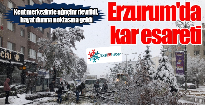 Erzurum’da sabah erken saatlerde başlayan ve aralıksız devam eden yoğun kar yağışı hayatı durma noktasına getirdi. Şehrin muhtelif bölgelerinde onlarca ağaç yağan ilk kar ile birlikte kırılarak yollara savruldu. Zabıta ekipleri kırılan ağaçları temizleyerek yolu ulaşıma açarken, yayalar yürümekte güçlük çekti.