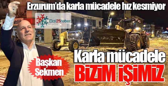 EKSİ25HABER / ERZURUM - Büyükşehir ve ilçe belediyeleri ile Karayolları ekipleri tarafından yollarda sürdürülen karla mücadele çalışmaları hız kesmiyor. İlk etapta şehir merkezindeki ana caddeler ve ilçe bağlantılarında yoğunlaşan ekipler, bugün itibarıyla ara cadde ve sokaklarda kar temizliğine başladı. Özellikle gece başlayan don ve soğuk hava zaman zaman ekiplerin çalışmalarını zorlaştırıyor. Vatandaşların kışı rahat ve huzur içinde geçirmeleri için tüm önlemleri ve hazırlıkları aldıklarını belirten Erzurum Büyükşehir Belediye Başkanı Mehmet Sekmen, "Karla mücadele bizim işimiz. Şehrimiz genelinde etkili olan kar yağışının ardından kar küreme ve temizleme çalışmalarımızı kar timlerimizle birlikte mesai mefhumu gözetmeksizin aralıksız bir şekilde sürdürüyoruz. Hemşehrilerimizin güvenilir ve konforlu yolculuklarını keyifle sürdürmeleri için azimle çalışıyoruz" dedi.