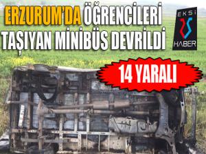EKSİ25HABER / ERZURUM - Erzurum'un Köprüköy ilçesinde, öğrencilerin içerisinde bulunduğu minibüs şarampole devrildi. Kazada 14 öğrenci yaralandı.