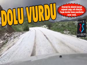 Horasan ve Narman ilçesinin yüksek kesimlerinde etkili olan dolu yağışı adeta kar gibi yolları beyaza büründürdü.