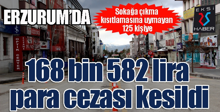 EKSİ25HABER / ERZURUM - Erzurum’da sokağa çıkma kısıtlamasına uymayan 125 kişiye toplam 168 bin 582 lira idari para cezası kesildi.