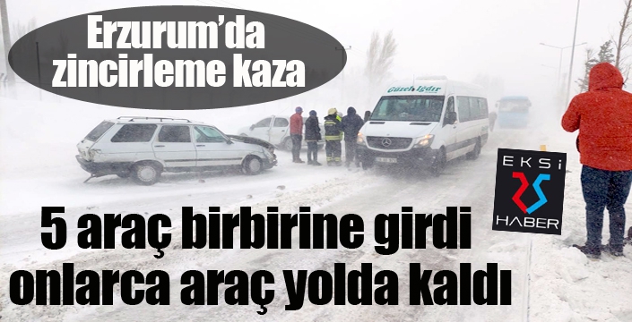 Olay, Erzurum-Pasinler karayolunda meydana geldi. Yoğun kar yağışının ve tipinin etkili olduğu bölgede meydana gelen zincirleme kazada araçlar birbirine girdi. 5 aracın karıştığı kazada 2 kişi hafif şekilde yaralanırken, kaza sonrası araçlarda bulunan yolcular itfaiye ve polis araçlarıyla olay yerinden tahliye edildi.