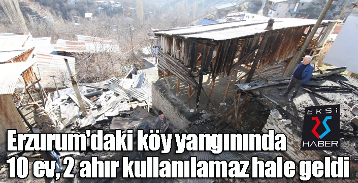 EKSİ25HABER / ERZURUM - Erzurum’un Uzundere ilçesine bağlı Dikyar Mahallesi’nde elektrik kontağından çıktığı belirlenen yangında 10 ev ve 2 ahır yandı.