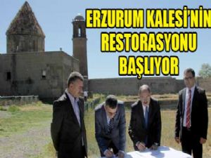 Erzurum Kalesi'nin restorasyonuna ilişkin kale içinde protokol imza töreni düzenlendi. DAP Başkanı Adnan Demir ve Erzurum Rölöve ve Anıtlar Müdürü Suat Bakır karşılıklı imzaları attılar.