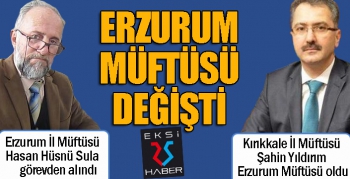 EKSİ25HABER / ERZURUM - İl Müftüleri Atama Kararları, Resmi Gazete'de Cumhurbaşkanı Erdoğan imzasıyla yayımlandı. Erzurum İl Müftüsü Hasan Hüsnü Sula görevden alınırken, yerine Kırıkkale Müftüsü Şahin Yıldırım atandı.