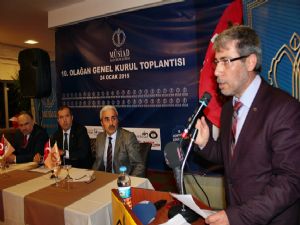 Divan Başkanlığını MÜSİAD Yönetim Kurulu Üyesi Necmettin Öztürk'ün yaptığı genel kurula AK Parti Erzurum Milletvekilleri Cengiz Yavilioğlu, Fazilet Çadcı Çığlık, Erzurum Teknik Üniversitesi Rektörü Prof.Dr. Muammer Yaylalı'nın yanı sıra çok sayıda bürokrat, siyaset ve iş adamları katıldı. MÜSİAD Erzurum Şubesi Yönetim Kurulu Üyesi Abdulkerim Kavaz'ın Kur'an-ı Kerim tilavetinin ardından okunan İstiklal Marşı ile başlayan 10. Olağan Genel Kurul'un açılışında konuşan Necmettin Öztürk, ekonomide büyüyen ülkeler içerisinde Türkiye 'nin rolünün büyük olduğunu söyledi. Öztürk, "En büyük sorumluluğu ve yükümlüğü biz sanayici ve yatırımcılar olarak kendimiz üstlenmekteyiz. MÜSİAD Genel Merkezi olarak Türkiye genelinde bir süre önce iş dünyasında yaptırdığımız anket sonucu hazırladığımız ekonomi raporuna göre Türkiye'nin büyüme oranı da belli oldu. Bu yılı, yüzde 4 bir büyümeyle Türkiye kapatmış durumda. 2015-2016 yılının öngörüleri aynı değerde göstermekte. Ekonomide büyüyen ülkeler içerisinde Türkiye'nin rolü de büyüktür. En büyük sorumluluğu ve yükümlüğü biz sanayici ve yatırımcılar olarak kendimiz üstlenmekteyiz" diye konuştu.