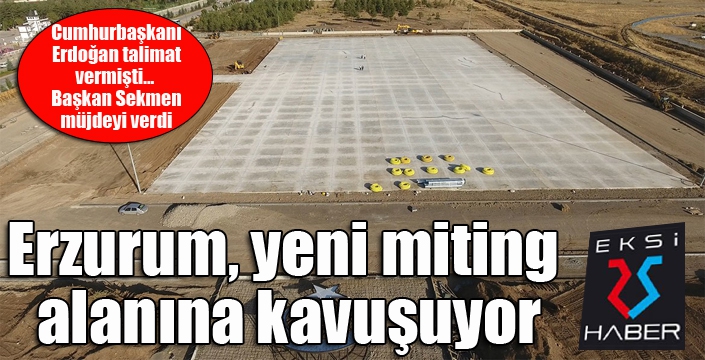 EKSİ25HABER / ERZURUM - Cumhurbaşkanı Recep Tayyip Erdoğan’ın talimatları sonrası çalışmalara başlanılan yeni miting alanında sona gelindi. 230 bin kapasiteli yeni alanın son halini Erzurum Büyükşehir Belediye Başkanı Mehmet Sekmen, sosyal medya hesabından kamuoyu ile paylaştı.