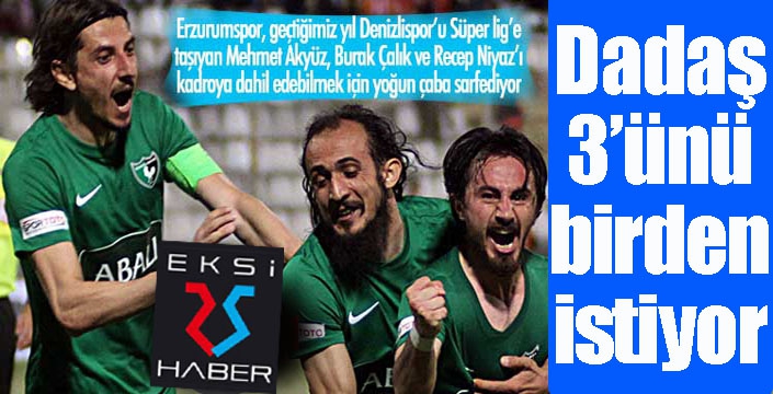 EKSİ25HABER / ERZURUM - Sezonun ilk yarısını lider Hatayspor'un 6 puan gerisinde 2'nci sırada kapatan Büyükşehir Belediye Erzurumspor'da yönetim, ikinci yarıda daha güçlü bir kadro oluşturmak için kolları sıvadı. Kadroya en az 4-5 takviye yapmayı planlayan Mavi Beyazlı yönetim, geçtiğimiz yıl Yukatel Denizlispor'u Süper Lig'e taşıyan 3 isime birden kancayı taktı. Dadaşlar, Mehmet Akyüz, Recep Niyaz ve Burak Çalık'a Mavi Beyazlı formayı giydirmeye çalışıyor...