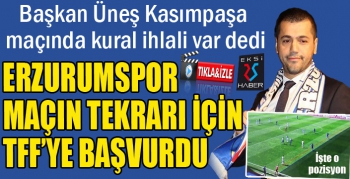 EKSİ25HABER / ERZURUM - BB Erzurumspor Başkanı Hüseyin Üneş, Kasımpaşa maçında mavi-beyazlı ekibin yediği ikinci golde ofsayt çizgisinin yanlış çekildiğini ve kural ihlali yapıldığını belirterek, maçın tekrarı için TFF'ye başvurduklarını açıkladı.