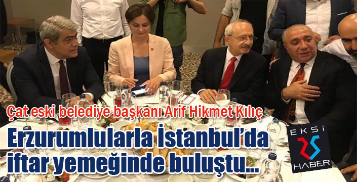 EKSİ25HABER / ERZURUM - Çat’ın bir önceki belediye başkanı CHP’li Arif Hikmet Kılıç, İstanbul’da Erzurumlularla iftar yemeğinde bir araya geldi. Kılıç’ın verdiği iftar yemeğine Cumhuriyet Halk Partisi Genel Başkanı Kemal Kılıçdaroğlu da katıldı. Yemekte gündem 23 Haziran seçimlerinde yapılacak olan İstanbul seçimleriydi.