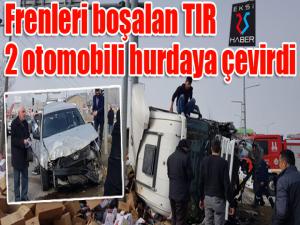 EKSİ25HABER / ERZURUM - Erzurumda freni boşalan tır 2 otomobili önüne katarak sürükledi. Araçlarda sıkışanlar, olay yerinde ki vatandaşlar tarafından çıkartıldı.