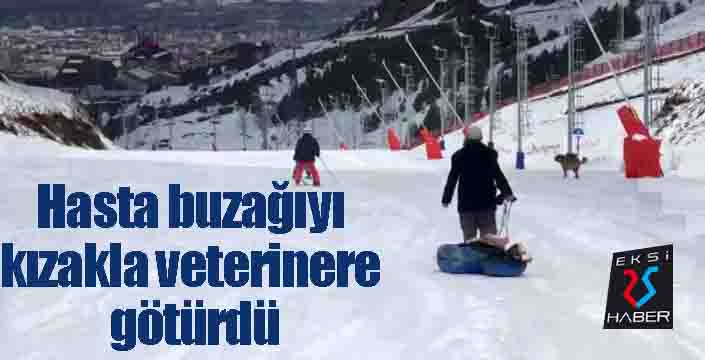 Palandöken Dağı’nın eteklerinde besicilik yapan bir kişi hastalanan buzağılarını veterinere kızakla taşıdı. Buzağıları battaniyeye sararak kızağa koyan besici, Palandöken pistlerinden aşağıya doğru kayarak, kent merkezine götürdü. Pistlerde kayak yapanlar bu anları şaşkınlıkla izledi.