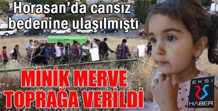 Horasan ilçesinde kaybolan ve dün sabah dere kenarında bir çoban tarafından cesedi bulunan 2,5 yaşındaki Merve Bayrak, Dalbaşı Mahallesi'nde düzenlenen cenaze töreni sonrası toprağa verildi. Cenazede küçük kızın acılı ailesi ve akrabaları gözyaşlarını tutamadı.