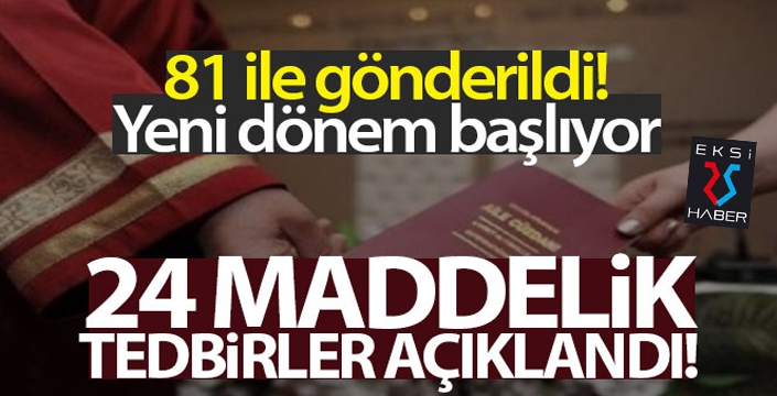 Bu kapsamda, nikâh merasimi için kullanılacak mekânların faaliyetlerine izin veren mevzuat hükümleri (İşyeri Açma ve Çalışma Ruhsatlarına İlişkin Yönetmelik vb.) ile iş sağlığı ve güvenliğine ilişkin tedbirlere ilave tedbirler alındığı ifade edilerek, alınan tedbirler 24 madde halinde sıralandı.